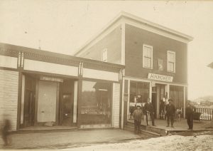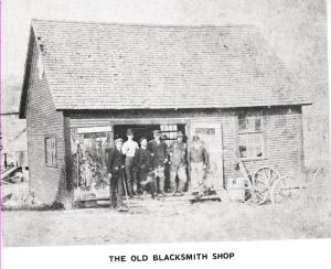 This Blacksmith Shop, photo taken around 1906, located to the right of the bridge and close to the store burned in the fire of April 1932.