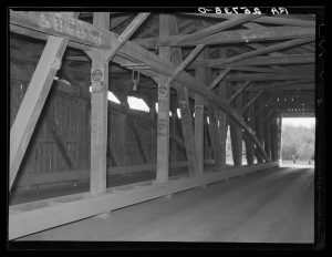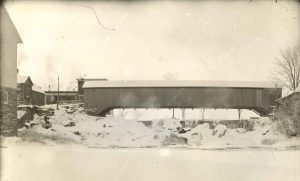 This two lane covered bridge was built in 1836 and stood at that location until April 1932 when it and most of the surrounding buildings burned.