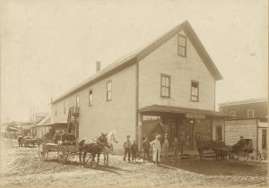 This photo shot from east to west shows the railroad tracks so it is after 1876 along with the store, the post office, the railroad, and the building opposite the store which was likely the black smith shop.