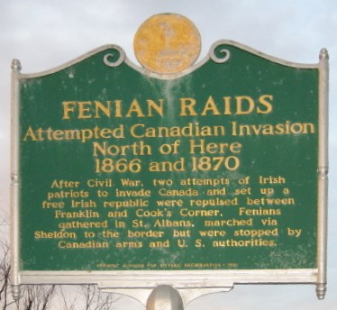 The Fenian raids, 1866 and 1870, were a mini war between the Irish Republican Army, immigrants to the United States who served in the Civil War, and the British Forces in Canada. Ultimately, the Irish retreated after a defensive attack on the border in Canada left a couple of Fenian deaths.