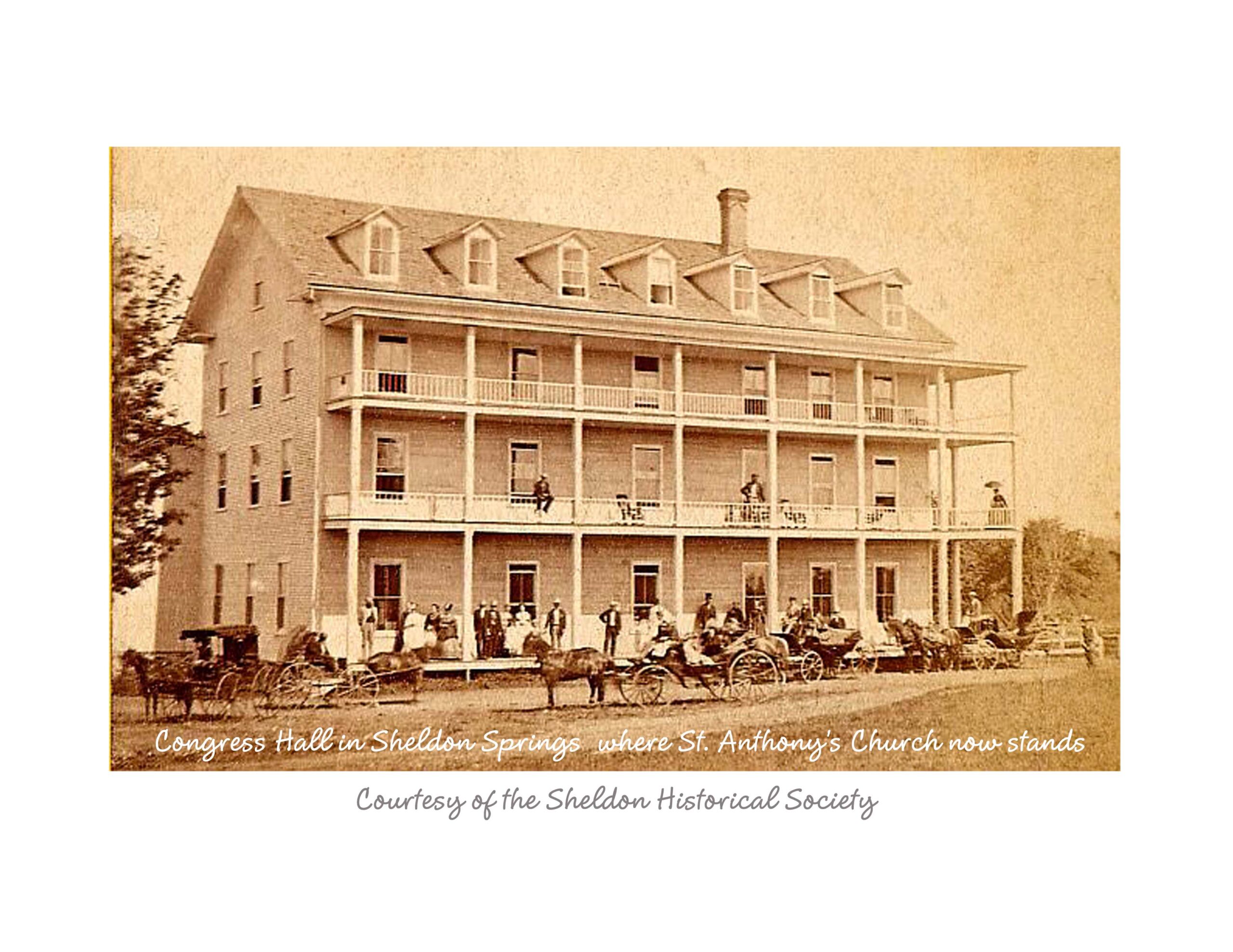 “Congress Hall, the old familiar hotel building that has stood at Sheldon Springs for so many years as a reminder of the former days of tourist activity in this region, was burned between 12 and 1o’clock Tuesday morning. The fire caught from a chimney in one part of the building used as a tenement. The building was given to the Roman Catholic diocese of Vermont several years ago.”